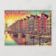 Here’s an enhanced vintage travel postcard featuring Amsterdam with colorful canal houses in a row, painted in bright hues of red, blue, yellow, and green, now with more Dutch details. 🇳🇱🚲🌷✨ The scene includes a golden sunset with warm, glowing hues, and tulip fields, windmills in the distance, and traditional boats along the canal. The bold Art Deco-style typography reads "Discover Amsterdam", creating a nostalgic, European travel vibe.