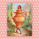 Golden Amphora, a charming and quirky anthropomorphic illustration features woman encased in a classical vase surrounded by Grecian columns. The enhanced Victorian trade card displays the stippled texture typical of colored printing of this era. It’s perfect for kitchen and dining room decor, notebooks, cards and food related products.