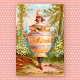 Hello Sugar, a charming and quirky anthropomorphic illustration features woman encased in a sugar bowl surrounded by a forest. The enhanced Victorian trade card displays the stippled texture typical of colored printing of this era. It’s perfect for kitchen and dining room decor, notebooks, cards and food related products.