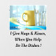 Photo of dishes is featured on this floor decal. With message, " I Give Hugs & Kisses, When You Help Do The Dishes"! Partial transparent design, low tack vinyl and slip resistance coating on this decal, is compatible with most surfaces. A cute reminder that you would like some help with this chore!