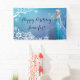 Celebrate a Frozen-inspired birthday with this enchanting Elsa birthday banner! Featuring Queen Elsa in a stunning winter wonderland design, this beautifully crafted banner showcases cool blue hues, delicate snowflakes, and a magical Arendelle backdrop. Personalize it with your child’s name and age for a unique and memorable decoration. Perfect for a Frozen-themed party, winter celebration, or Disney princess event, this banner sets the scene for an unforgettable celebration!