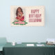 Celebrate your little wayfinder with this Moana Happy Birthday banner! Featuring the adventurous Disney heroine in her signature island outfit, Moana is shown kneeling confidently in front of a soft tribal-style pattern, framed by lush green leaves and pink tropical flowers. The bold magenta text reads “HAPPY BIRTHDAY” and is fully customizable with the birthday child's name. Perfect as a party backdrop or table display, this banner brings tropical flair and Disney magic to any Moana-themed birthday celebration.