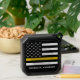 Thin Gold Line Dispatcher Bluetooth Speaker - American flag in Dispatcher Flag colors, modern black and gold design . Personalize with dispatchers name. This personalized dispatcher name speaker is perfect for police departments and law enforcement officers.. COPYRIGHT © 2023 Judy Burrows, Black Dog Art - All Rights Reserved. Dispatcher Personalized Thin Gold Line Bluetooth Speaker
