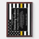 Celebrate and show your appreciation to an outstanding Dispatcher with this Thin Gold Line Award - American flag design in Dispatcher Flag colors , modern black gold design. Personalize this 911 dispatcher award with dispatchers name, text with police department, emergency or fire department name and community, and date of issue. Perfect of dispatcher retirement awards, dispatcher service awards, and dispatcher recognition and appreciation. COPYRIGHT © 2020 Judy Burrows, Black Dog Art - All Rights Reserved. Dispatcher Service Public Safety Excellence Award Plaque
