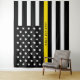 This tapestry which may be used as a photo backdrop for special occasions, features a black and white dispatcher thin yellow line American flag along with an officer's name for you to personalize.