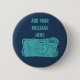 Add your own message or a name to create a fun personalized custom pin or button. This round button features a distressed style illustration of a retro disposable camera in teal blue with your own message in coordinating text above and is set against a navy blue background.