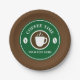 Disposable plates with custom warm coffee cup design. Brown and green colors with personalized white text. Coffee theme throwaway plates for home, cafe, dinner party, lunch room, cafetaria, restaurant, breakfast table, cookies, cake and desserts etc. Cute gift idea for coffee lover or caffeine addict. Fun for Birthday party, baby shower, girls weekend, wedding, bridal shower, housewarming etc.