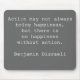 Steely gray mouse pad with Benjamin Disraeli quote. Action may not always bring happiness, but there is no happiness without action.