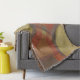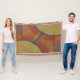 Dissolution cotton throw blanket. Dissolution is an abstract design created by Anna M. Asbury and consists of red, orange, olive and gray circles and rectangles.