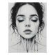 An overhead view looking down at a woman's face, softly rendered with diluted ink wash. The ink gently bleeds and trails away from her features, imparting a dreamlike, almost dissolving quality. This ethereal portrait evokes a sense of fragility and transient beauty through delicate, flowing ink techniques.