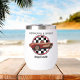 For the Corvette lover, this custom design features a photo of a red Corvette, over a black and white checkered circle. The circle is trimmed with a red and black double border. The text in this design reads, "Distinctive & Unique My Corvette. You can personalize this design by adding a name