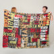 Crafted with meticulous attention to detail, this blanket exudes an artistic flair, drawing inspiration from the realms of modern aged fonts and distressed abstract typography. The amalgamation of red and yellow hues adds a pop of color, elevating the overall aesthetic and making it a standout accessory for any space.