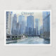 Vintage inspired postcard of the Chicago River in Downtown Chicago Illinois.