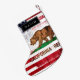 Perfect! Exactly what I ordered! I uploaded a picture of my blue chow, and the screen print was incredible. the back side of the stocking was the red and black checkered print. my puppy's name was also printed on the cuff of the stocking. PERFECT! Highly recommend this product! My puppy's name was screen printed onto the cuff of the stocking, the font was perfect!