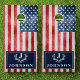 Distressed American Flag Family Name Monogram Cornhole Set. Personalize this custom patriotic red white and blue laurel monogrammed design with your own family name and monogram initial. The perfect United States Of America summer lawn party game for your family reunion, tailgating party, or 4th of July!