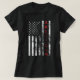 The feature on this shirt is a vertical distressed black and white American flag. At one end of the stars and stripes is the text in red that says "American". Unique!