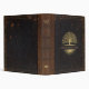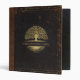 Custom genealogy/family tree binder with distressed vintge black leather covers, brown leather spine detail and gold accented trim and tree icons.