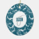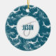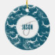 Distressed Blue Shark Pattern Monogram Ceramic Ornament