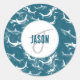 Distressed Blue Shark Pattern Monogram Classic Round Sticker