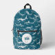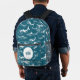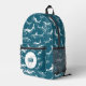 Distressed Blue Shark Pattern Monogram School Printed Backpack