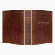 Got a row of ratty old binders in your Zoom book case background? Class up your shelves with this collection of binder covers modeled on vintage leather bound books. (Not real leather) Dark lustrious brown colored cloth, brown tooled leather spine with gold trim.
