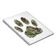 A camo dog paw print cartoon style with distressed effect applied to image. Custom notebooks.