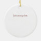 Lightweight, smooth, pure white ornament with nice sheen. Perfect size to be seen from across the room ... and to attract closer inspection! Price was great for ordering enough for the whole family! Clear, bold black design just as requested. Matches the order exactly. Just so nice!