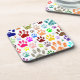Distressed Colorful Dog Paw Prints Beverage Coaster