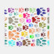 Cartoon dog paw prints many colors.