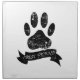 Distressed dog paw print with black ribbon. Man's best friend. Black and white image.