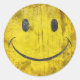 Distressed face sticker in yellow and gray.