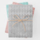 Gift wrap with grunge distressed harlequin pattern in three different color variations.