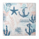 Ceramic Tile - Nautical pattern with anchors, starfish, coral, and sea elements in distressed blue and soft peach tones. Textured sketch style with a vintage coastal aesthetic. Ideal for beach lovers, ocean enthusiasts, nautical style fans, and summer coastal trend seekers.