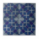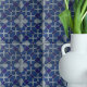 Introducing an exceptional ceramic tile design that showcases a captivating geometric mosaic pattern in shades of blue and gray. Taking inspiration from the timeless Portuguese Azulejo tiles, this pattern stands out beautifully against a weathered stone-like backdrop.
