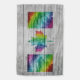This is a distressed, rustic Canada flag design in rainbow colours in place of the usual solid red and white. I created to appear as if the rainbow coloured Canadian maple leaf and colour block symbol was shallowly embossed in light grey distressed wood. Show your Pride all Summer long!