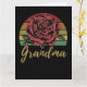Send this distressed vintage-style greeting card with your own personalized message on the front and back. Features a classic red rose in front of a distressed retro sunset background and the word "Grandma" in gold font.