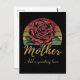 Send this distressed vintage-style postcard with your own personalized message on the front and back. Features a classic red rose in front of a distressed retro sunset background and the word "Mother" in gold font.