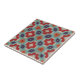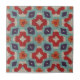 This ceramic tile features an abstract geometric pattern that exudes a sense of balance and precision. The design is reminiscent of kaleidoscopic imagery, with symmetrical shapes radiating from the center in a harmonious explosion of red, blue, teal, and beige The background has a distressed texture, giving the tile an antique charm while maintaining a modern aesthetic.