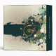 This 1.5" Avery graduation memory book binder has a dark teal, aqua, olive green, and orange swirls design on the left side. In the middle, there is a dark teal distressed band with the Class of and the customizable year of graduation and the name of the graduate. On the backside, the design is repeated. On the spine, you can customize this with whatever text you would like.