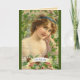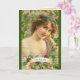 This design is a mix of Victorian with whimsy featuring a woman in the garden surrounded by growing things. It's really a collage because there's faint sheet music and verse. Put any message on the banner.