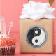 Heavily distressed yin yang symbol sticker in black, white and gray.