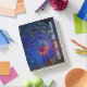 I was super excited when I got my cover in. It is attached by a magnet across the edge. I don’t think it will be very protective but it is very cute. I’m going to keep my iPad in a sleeve and use this face cover while I have it out. It folds to create a tilt for better viewing and to keep the iPad at a slight angle for typing. The colors are bright and it is fun. I’ve really enjoyed it. The personalization looks like amazing. It is the same color as the picture and is the same brightness. Well done! Very nice.