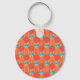 A Keychain with a pretty fob, with a country-style faux-patchwork pattern of hexagons of ditsy orange Floral, red, yellow and orange Stripes and white Polka Dots on an orange background. Coordinates with the Orange Fizz range.