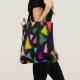 You will love carrying this All-Over Print Tote Bag, with the different sizes and colors of triangles, created with rough brushstrokes, on a black background. Stylish and fun!