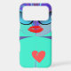 Make a statement with the Diva Aura Designer Phone Case. This vibrant tech accessory features the bold graphic of stylish sunglasses, rich red lips, and a suspended red heart against a dazzling turquoise and purple background. The design is printed in high definition, offering both style and protection. This Achempong Zazzle item showcases vibrant abstract art as a high-fashion cover for your phone, tablet, or laptop.