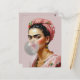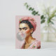 Diva with floral scarf blowing bubble gum postcard