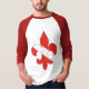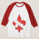 A custom designed red and white "Dive Flag" Fleur de lis on a raglan shirt with red accents.