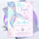 Dive into Five Mermaid Purple Teal 5th Mermaid Bir Invitation