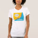 I love wearing a reprint of my colored pencil drawing of Annie the cat looking over the hillside. My illustration is based on a picture I took of Annie the manx cat. The printing turned out lovely, and the shirt is soft and thick. The American Apparel shirt run on the smaller size, so I always order a large or extra large.