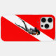 S.C.U.B.A Flag, or Diver Down Flag, is a red and white signal flag flown on a boat to indicate that there are divers in the water and for other boaters to stay clear. This has a female diver in full scuba gear diving down.